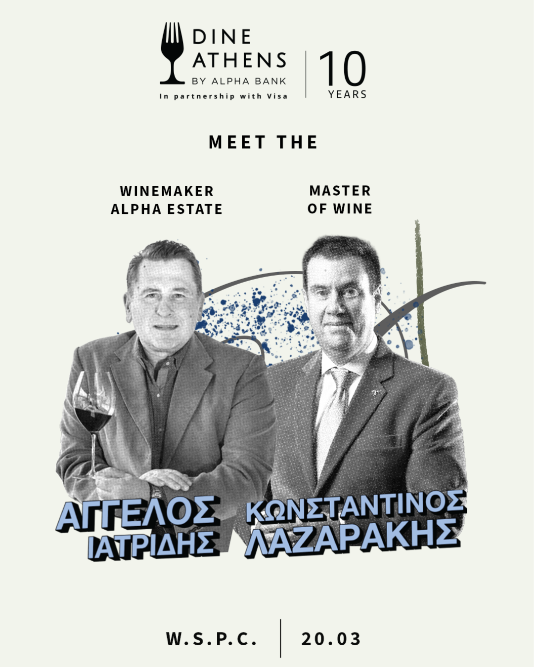 Στο πλαίσιο του Dine Athens 2026, αυτό το tasting event* στο WSPC προσφέρει μια εξαιρετική ευκαιρία να ανακαλύψετε διαφορετικές εκφράσεις του ελληνικού αμπελώνα μέσα από τον σχολαστικό σχολιασμό δύο κορυφαίων ειδικών. Κατά τη διάρκεια δύο ωρών, οι συμμετέχοντες θα έχουν την ευκαιρία να δοκιμάσουν επιλεγμένους οίνους μέσα σε μια διαδραστική συζήτηση γύρω από τη σύγχρονη ταυτότητα του ελληνικού κρασιού και να μάθουν για την ιστορία του αμπελώνα και τις τεχνικές παραγωγής που διαμορφώνουν το μέλλον του κλάδου.